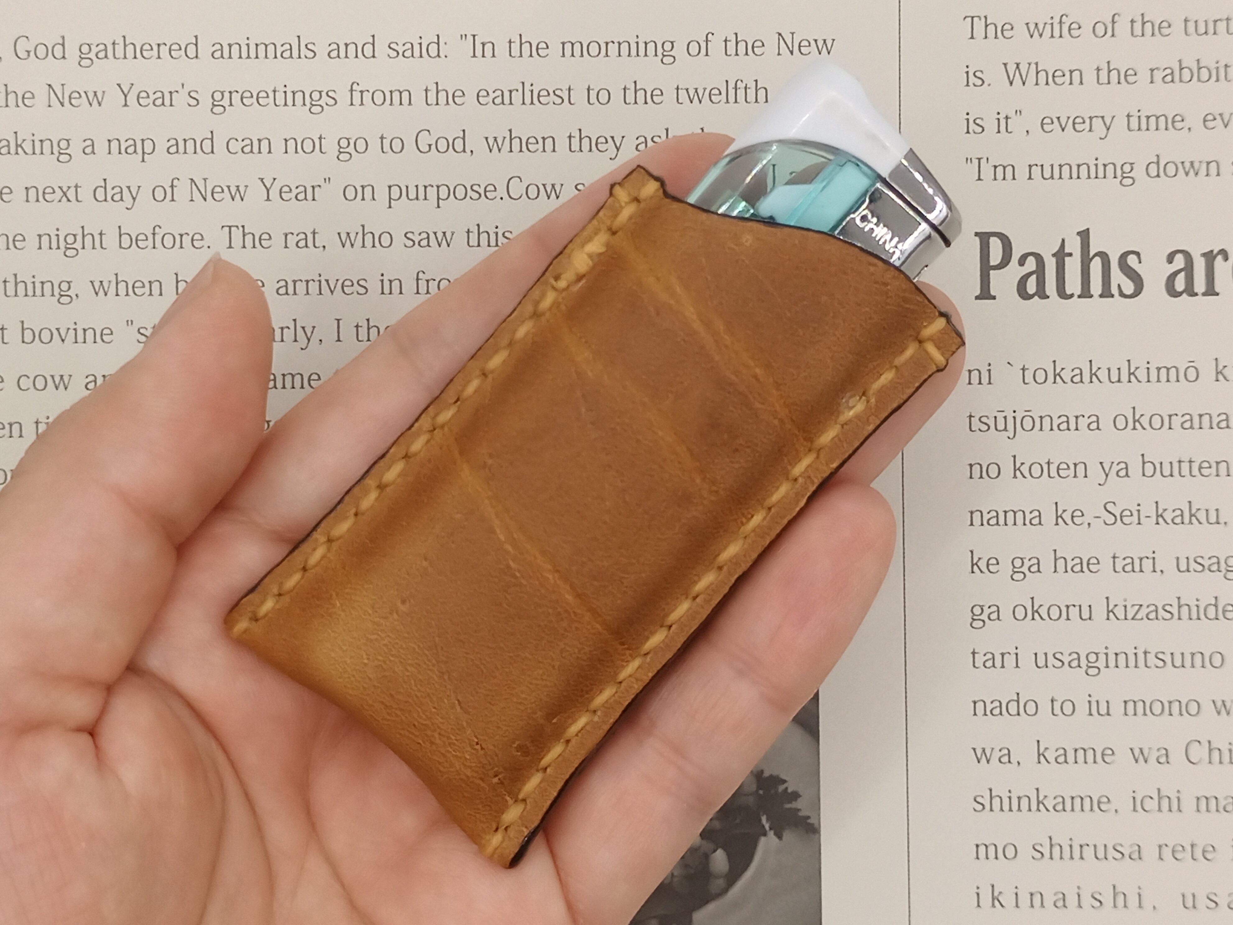 ヴィンテージ風の本革を使用したライターケース。管理人も愛用中。