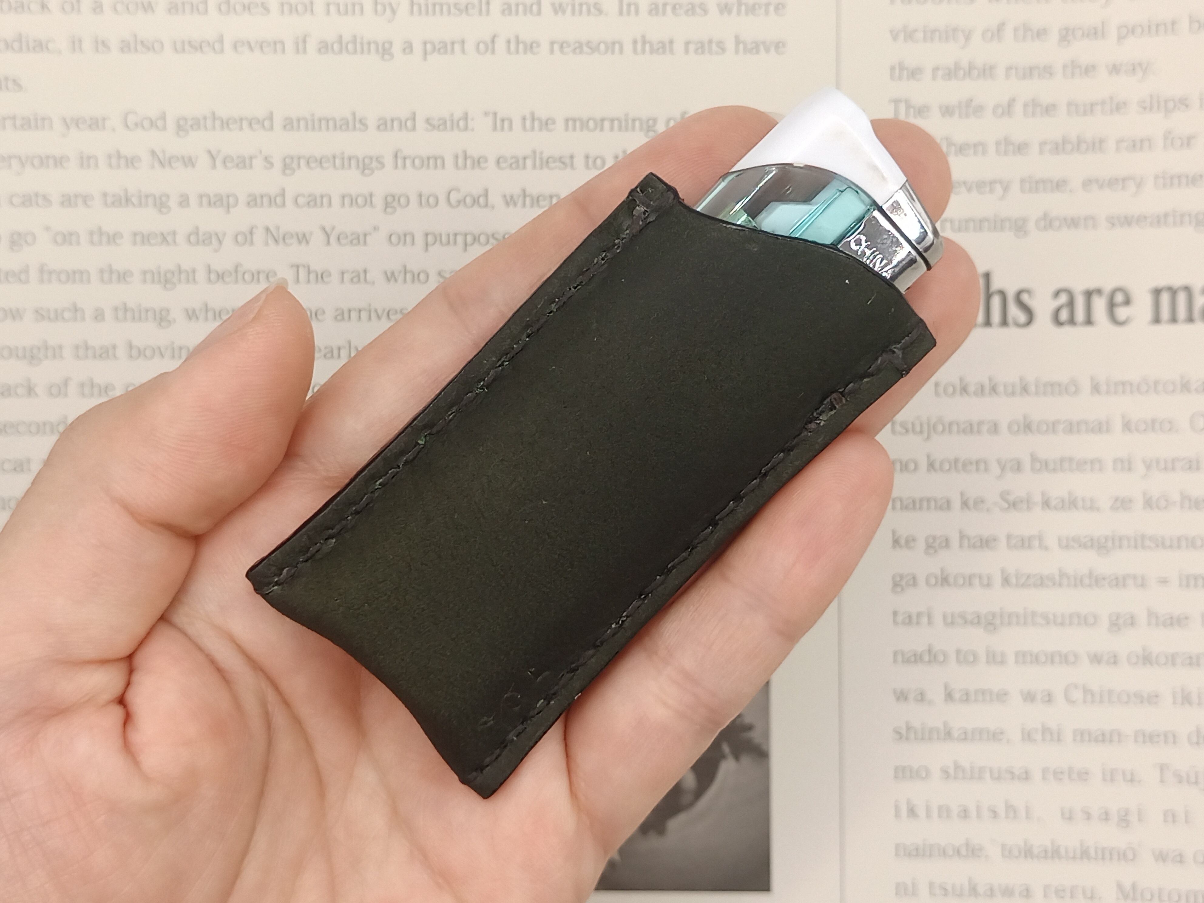 スウェード調の本革を使用したライターケース。管理人も愛用中。
