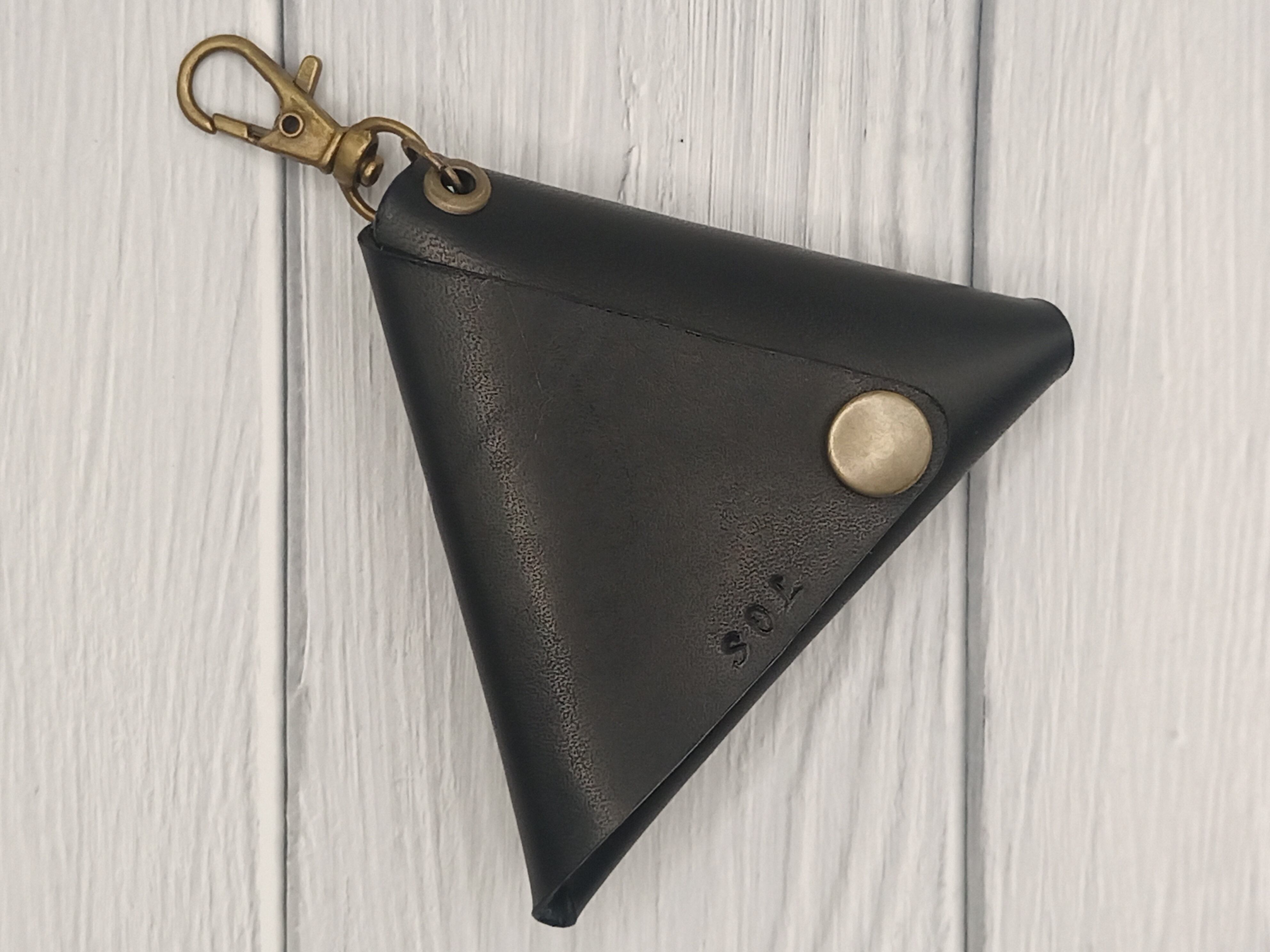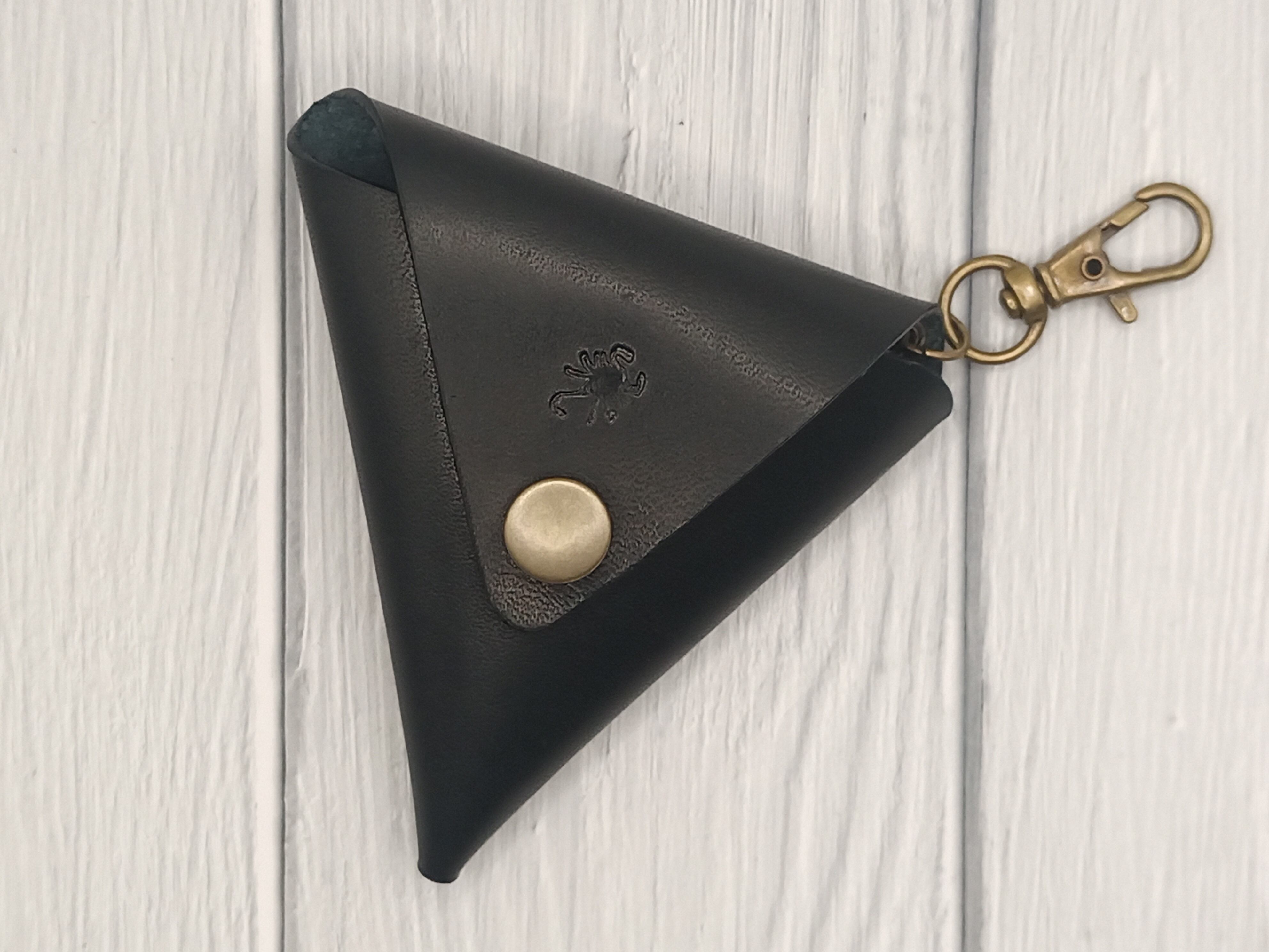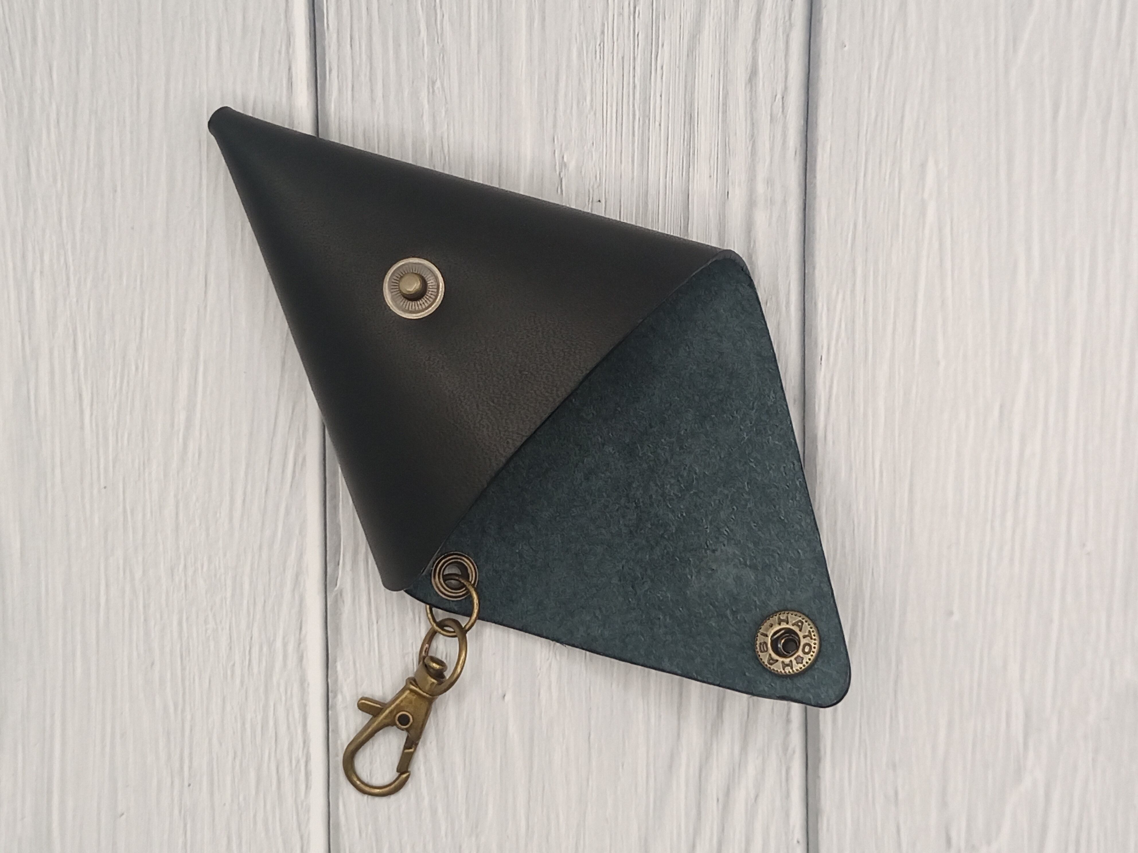 コインやイヤホンなどの小物入れにピッタリ。ナスカン付きで、ぶら下げて持ち歩く事ができます。スナップ式なのでお手入れの際に広げることも可能です。管理人も愛用中。