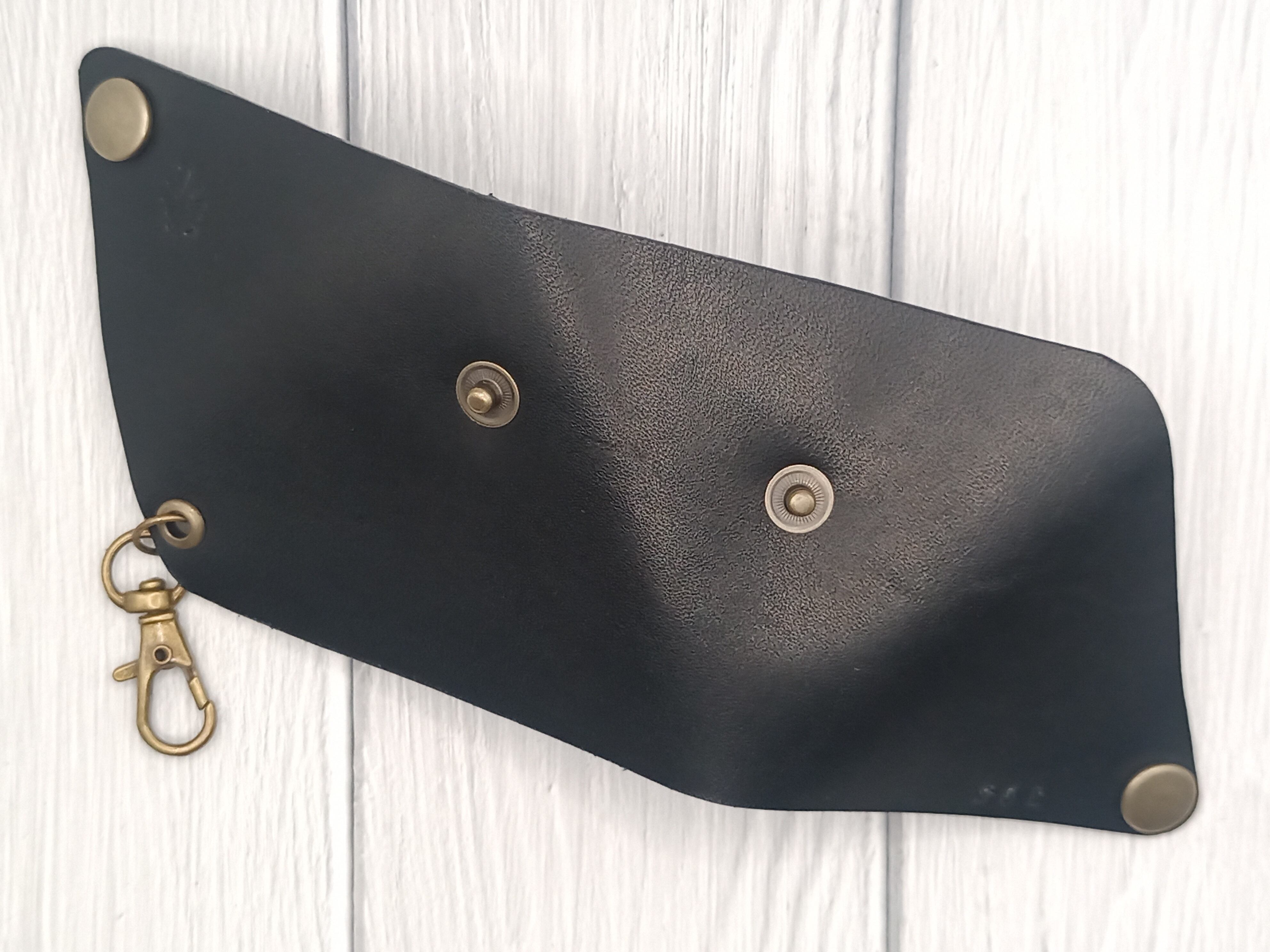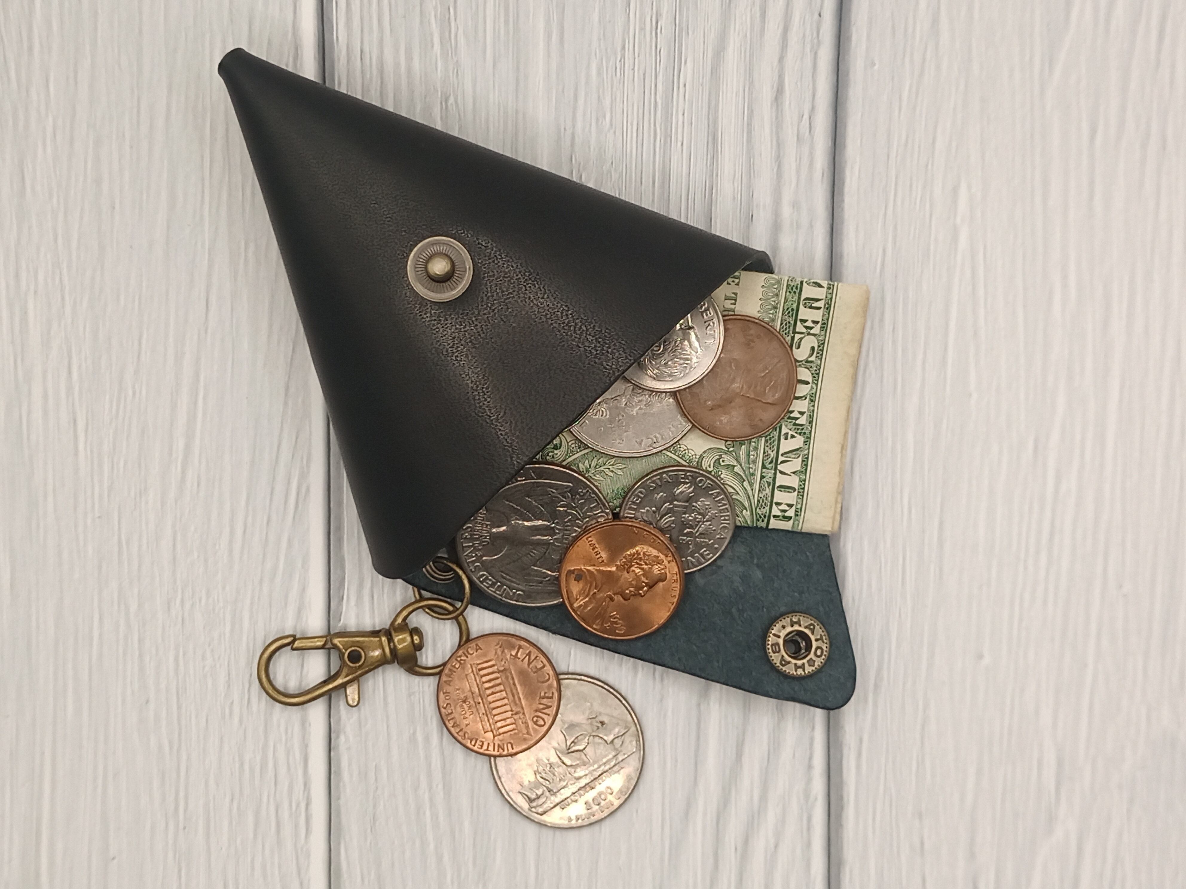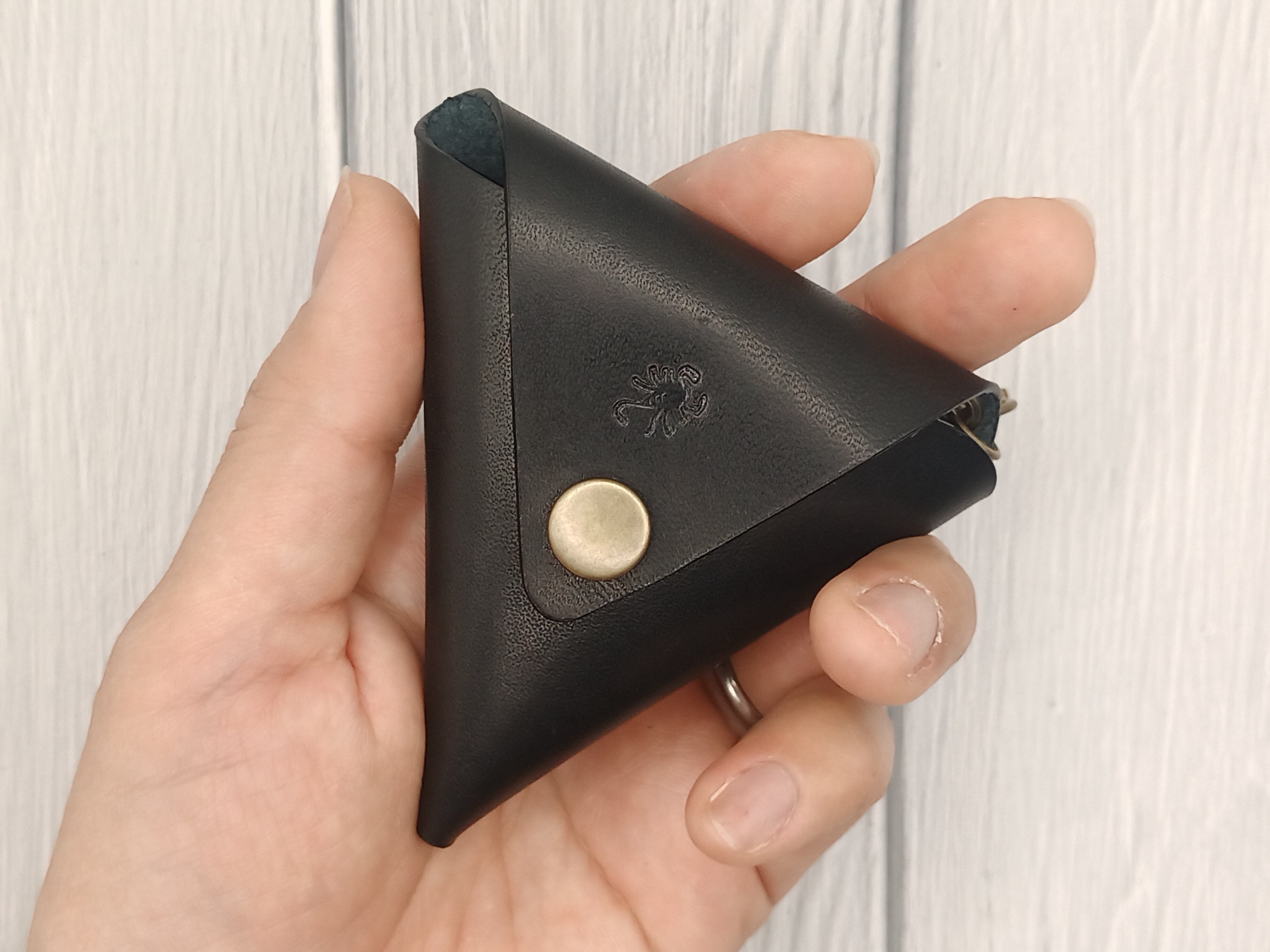 コインやイヤホンなどの小物入れにピッタリ。ナスカン付きで、ぶら下げて持ち歩く事ができます。スナップ式なのでお手入れの際に広げることも可能です。管理人も愛用中。