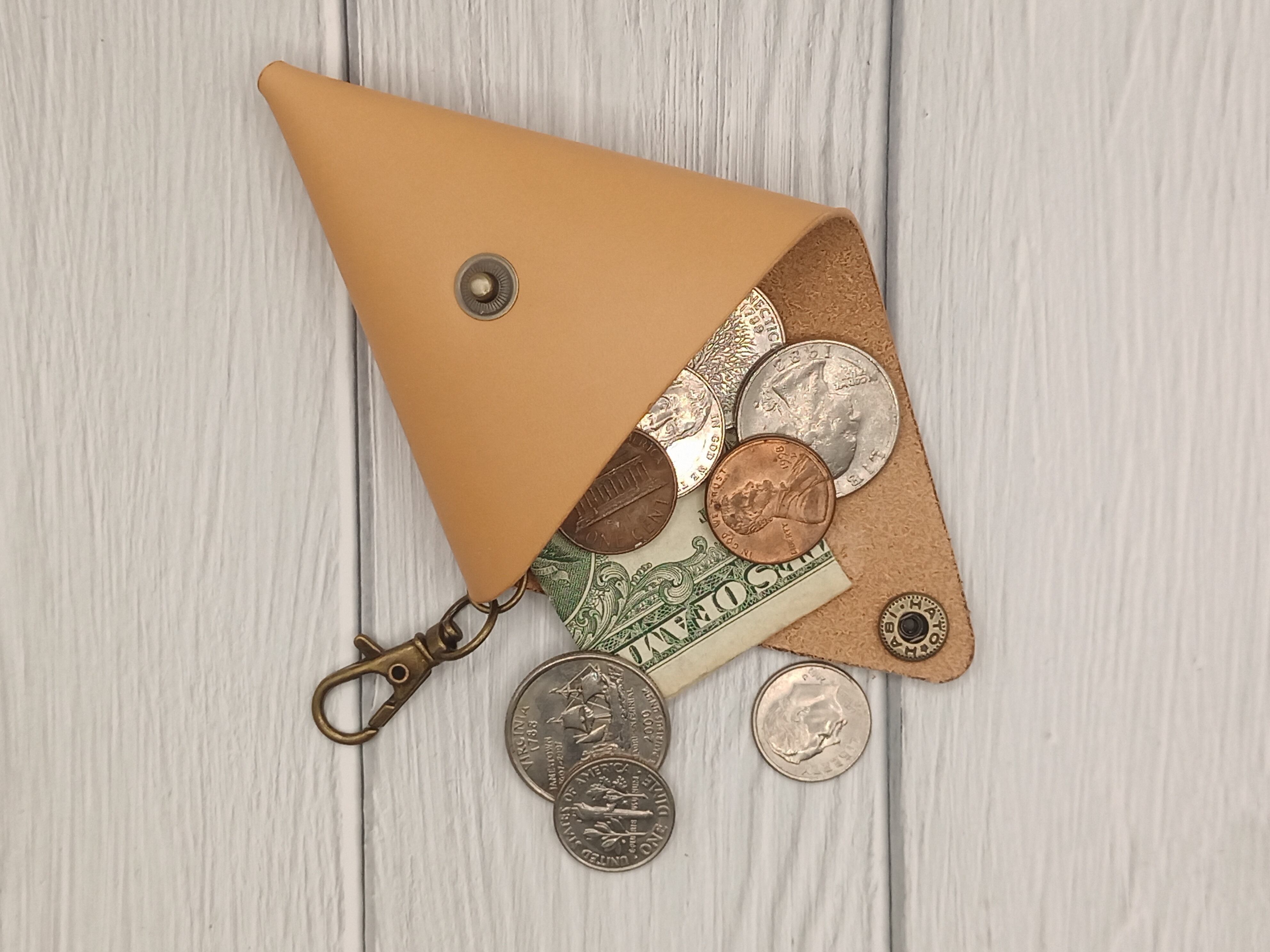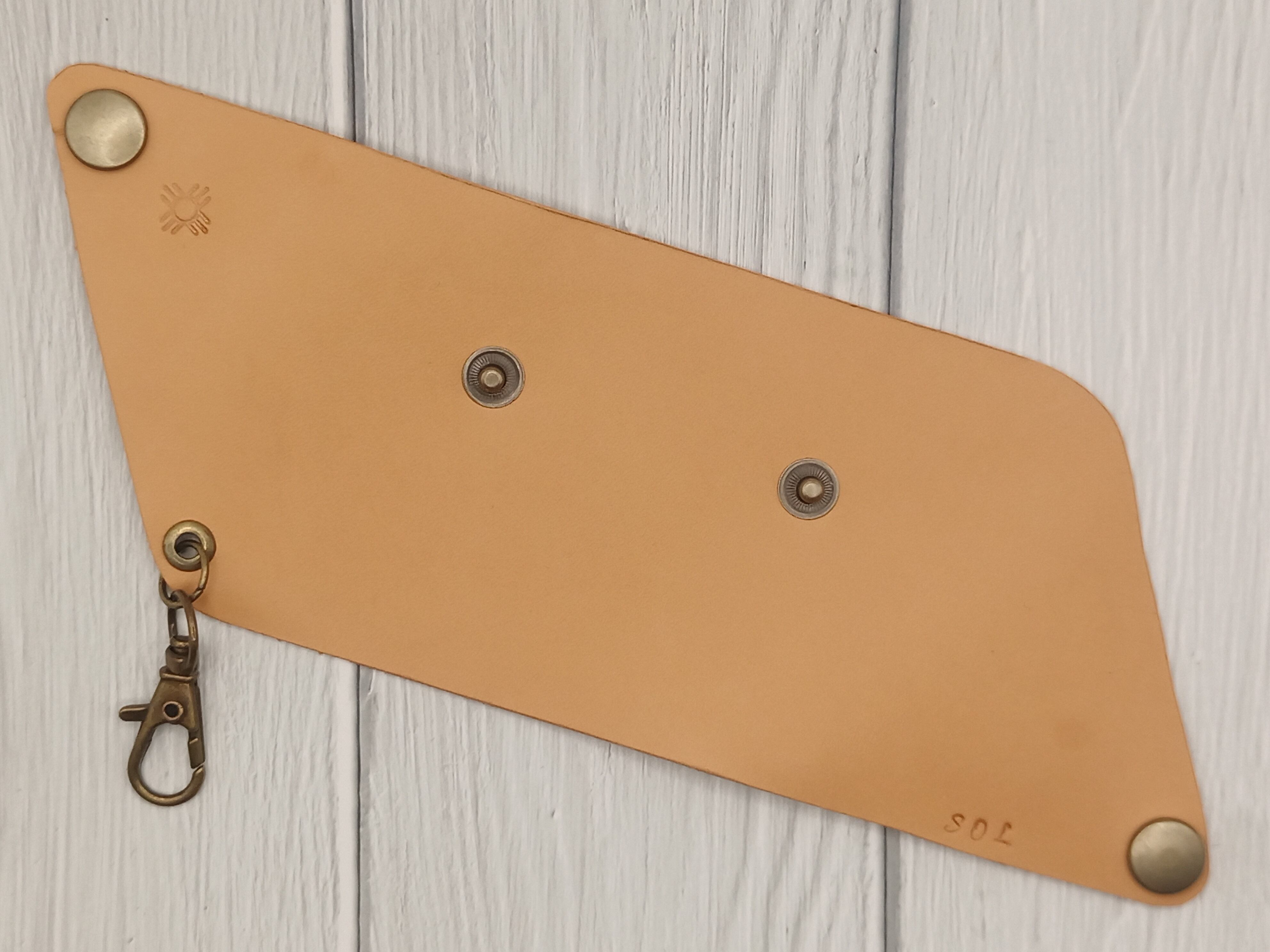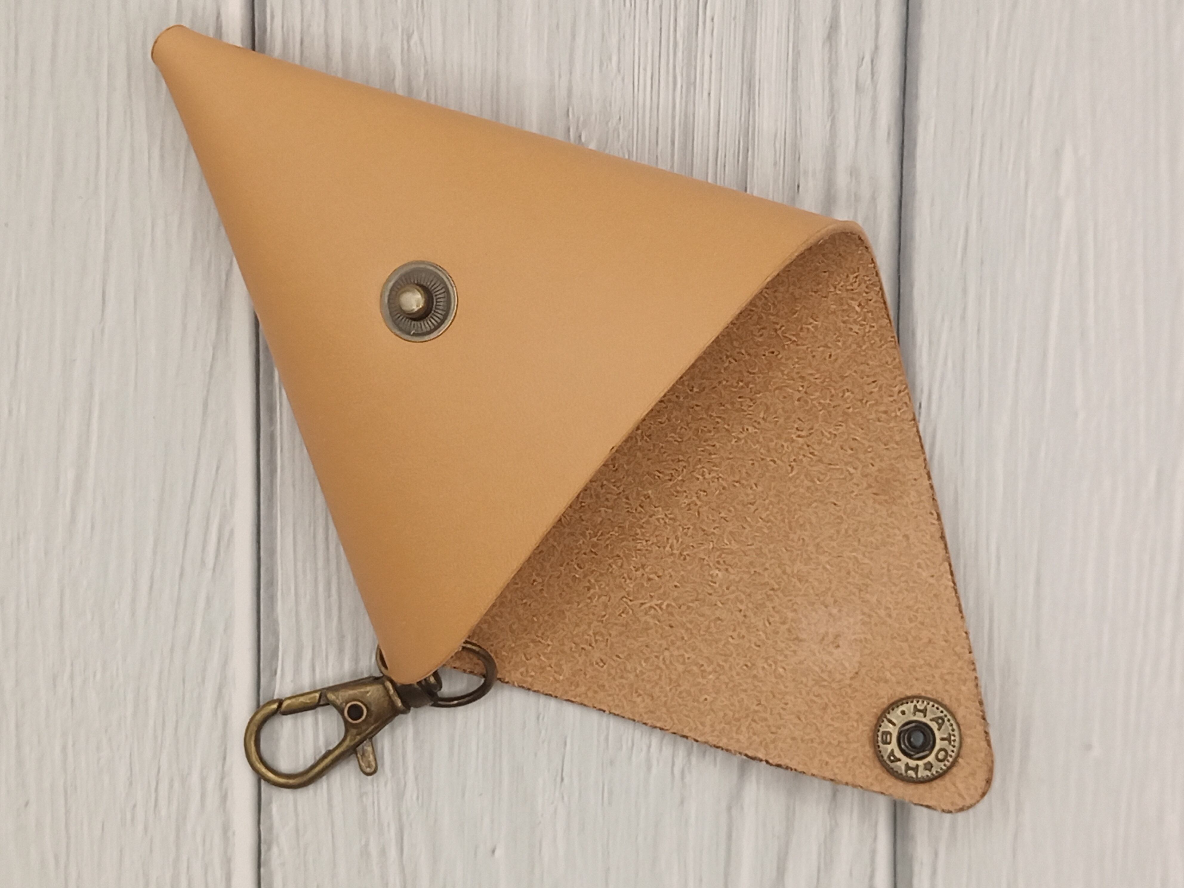 コインやイヤホンなどの小物入れにピッタリ。ナスカン付きで、ぶら下げて持ち歩く事ができます。スナップ式なのでお手入れの際に広げることも可能です。管理人も愛用中。