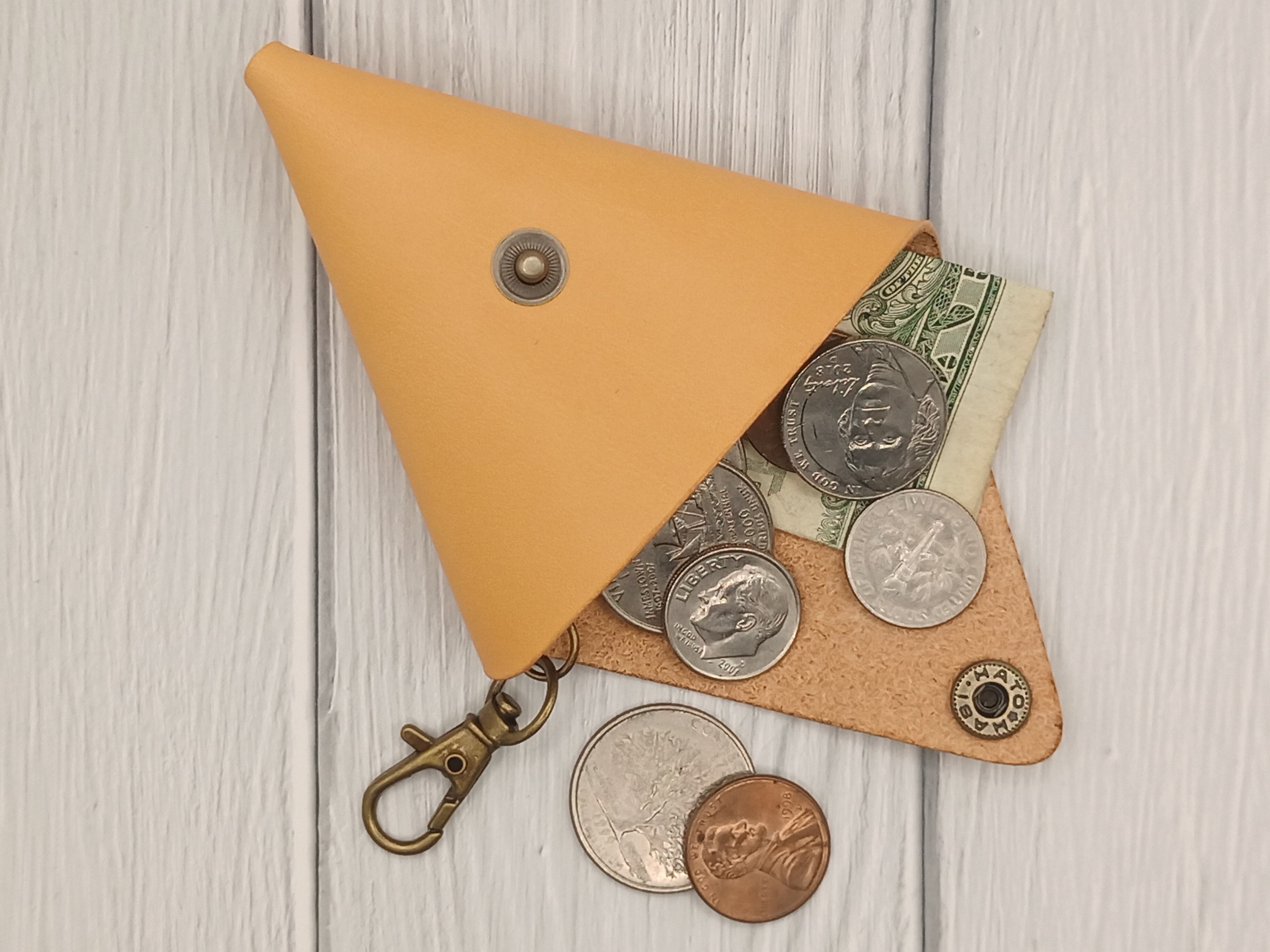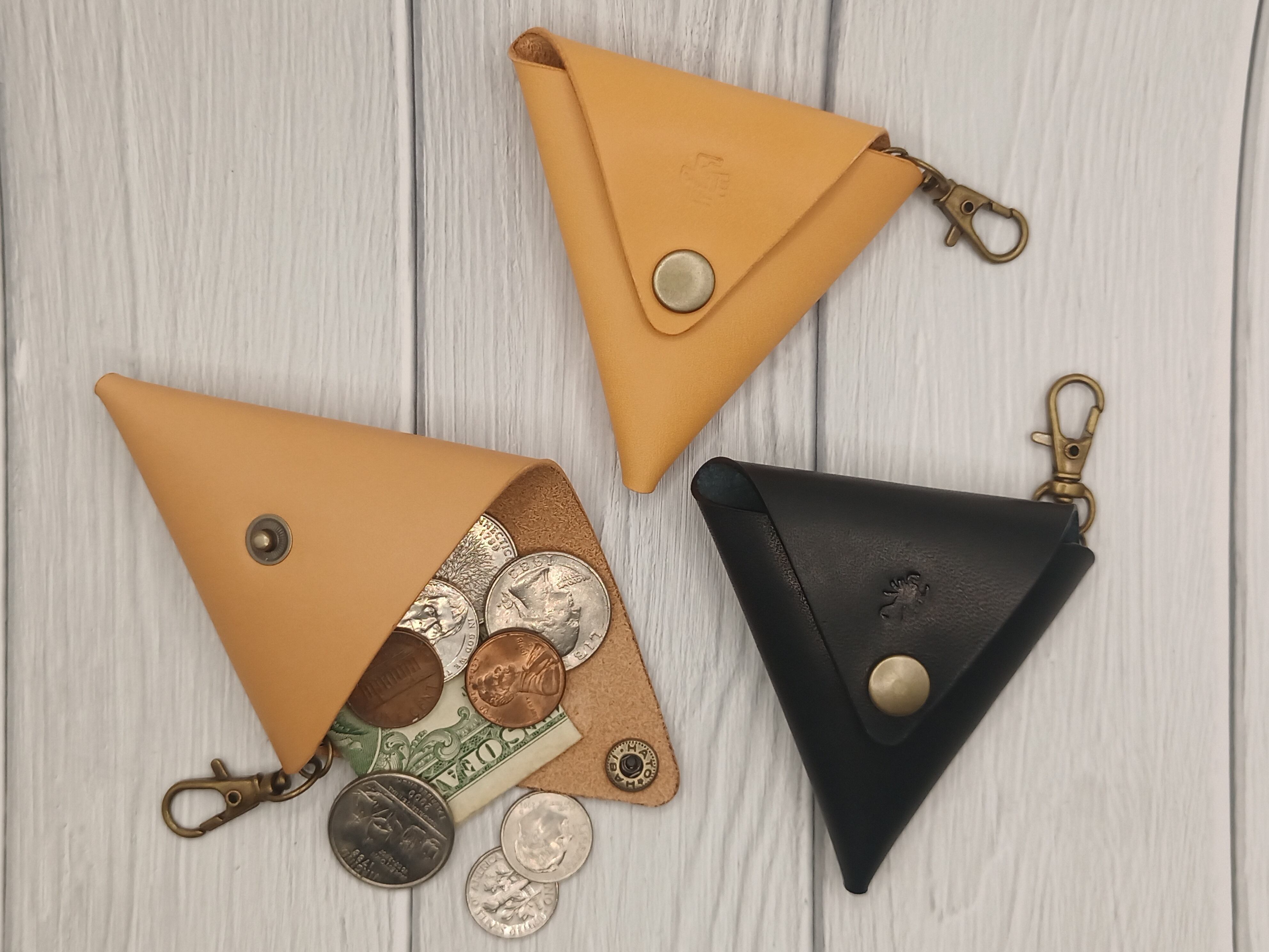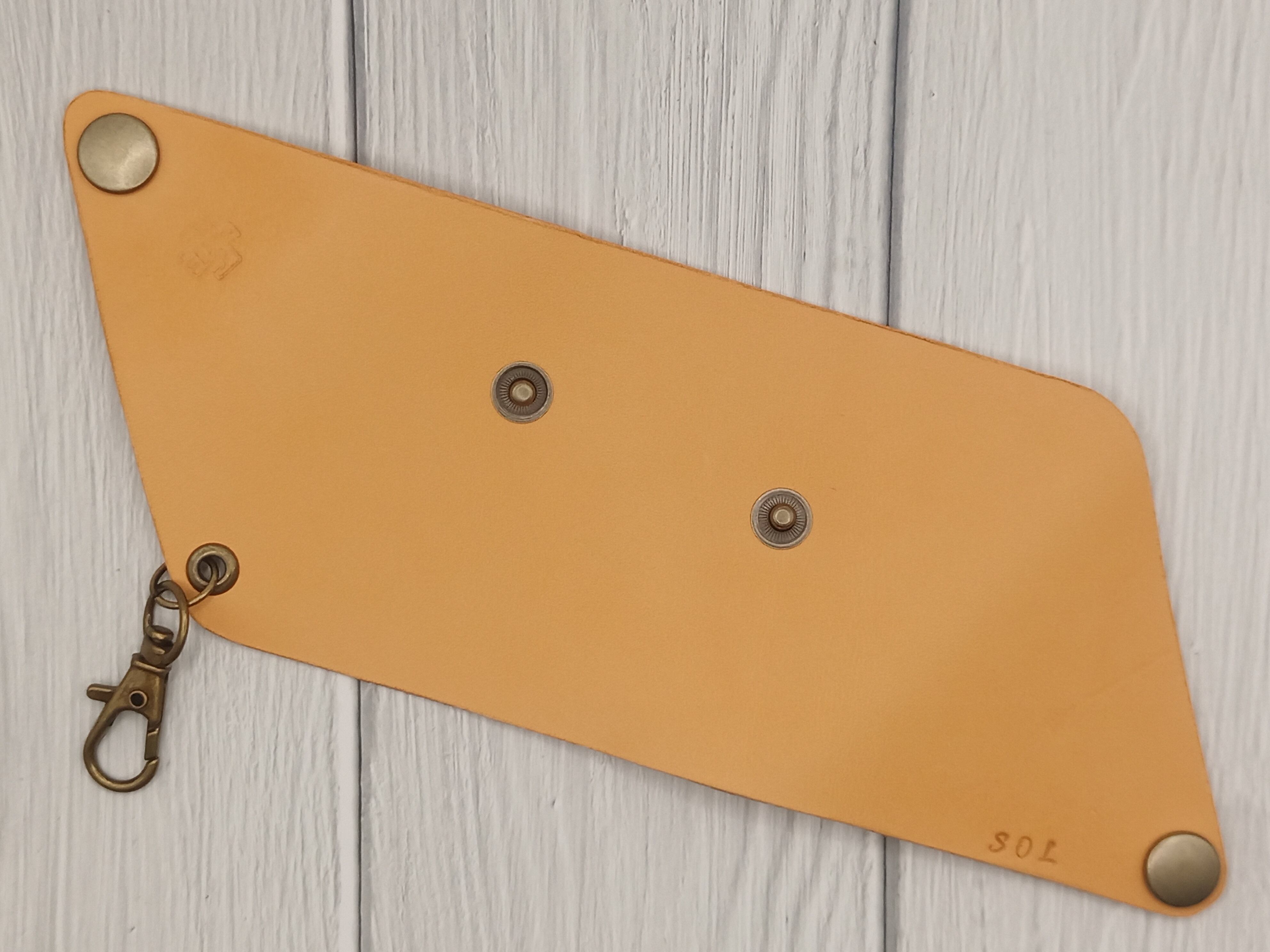 コインやイヤホンなどの小物入れにピッタリ。ナスカン付きで、ぶら下げて持ち歩く事ができます。スナップ式なのでお手入れの際に広げることも可能です。管理人も愛用中。