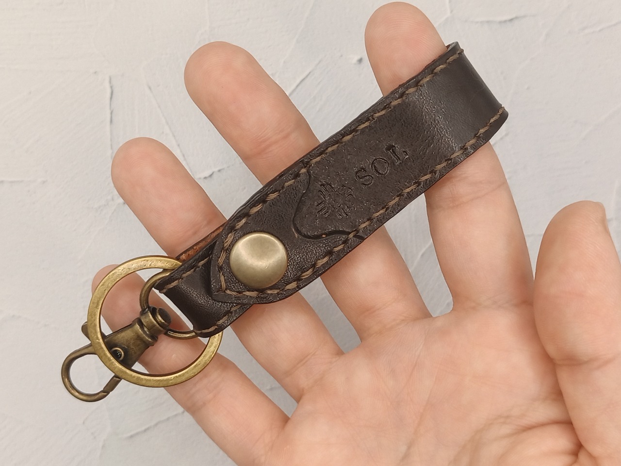 スナップで取り外し可能のベルトキーホルダー。ウェストにぶら下げてファッションアイテムとして。