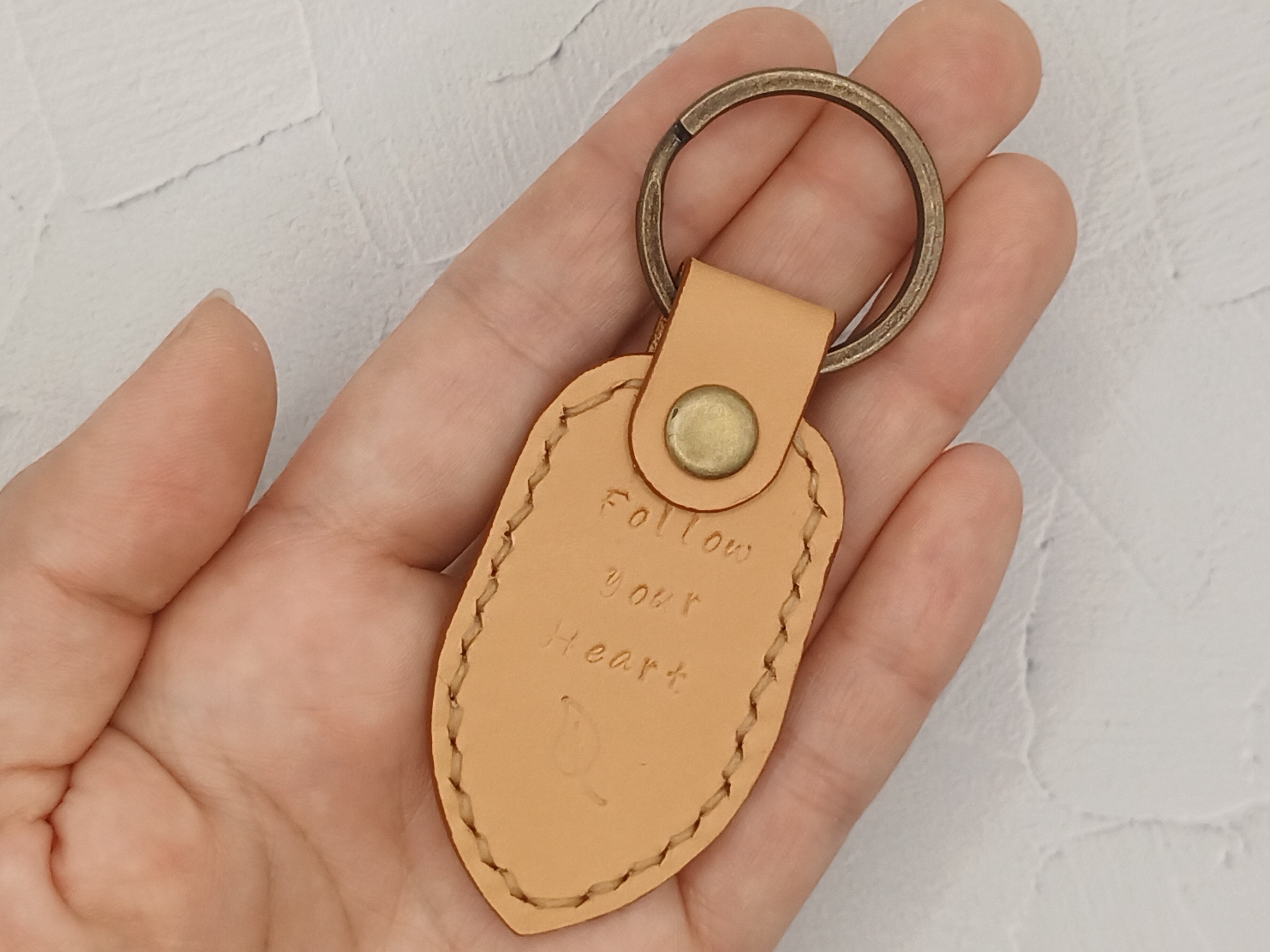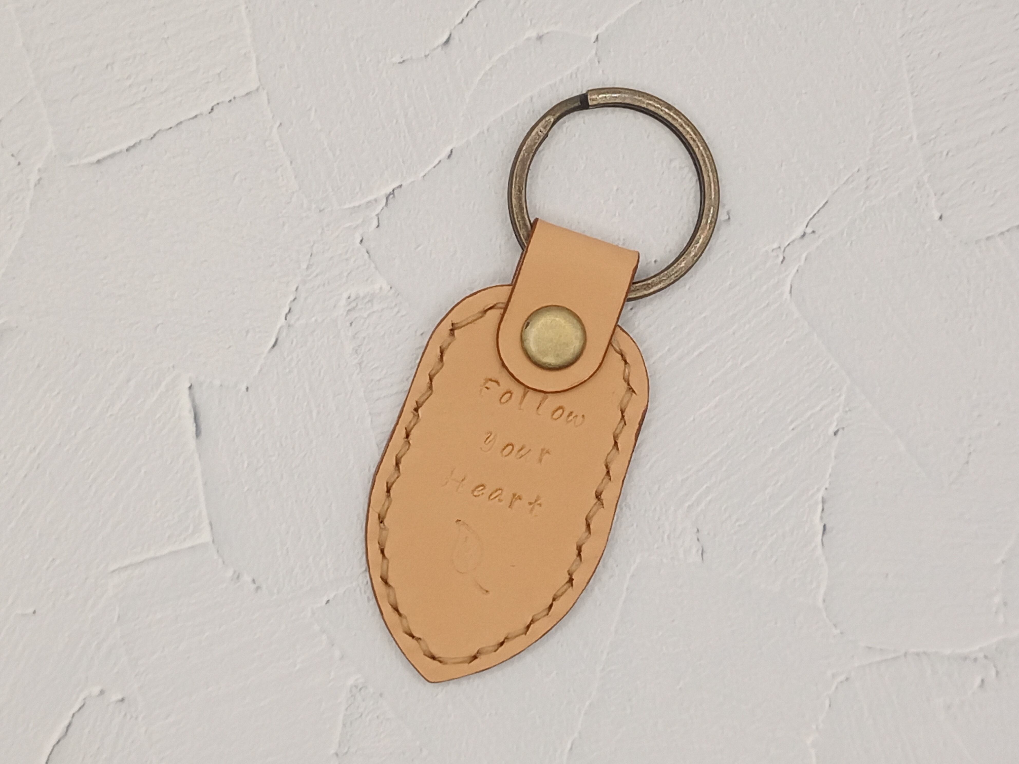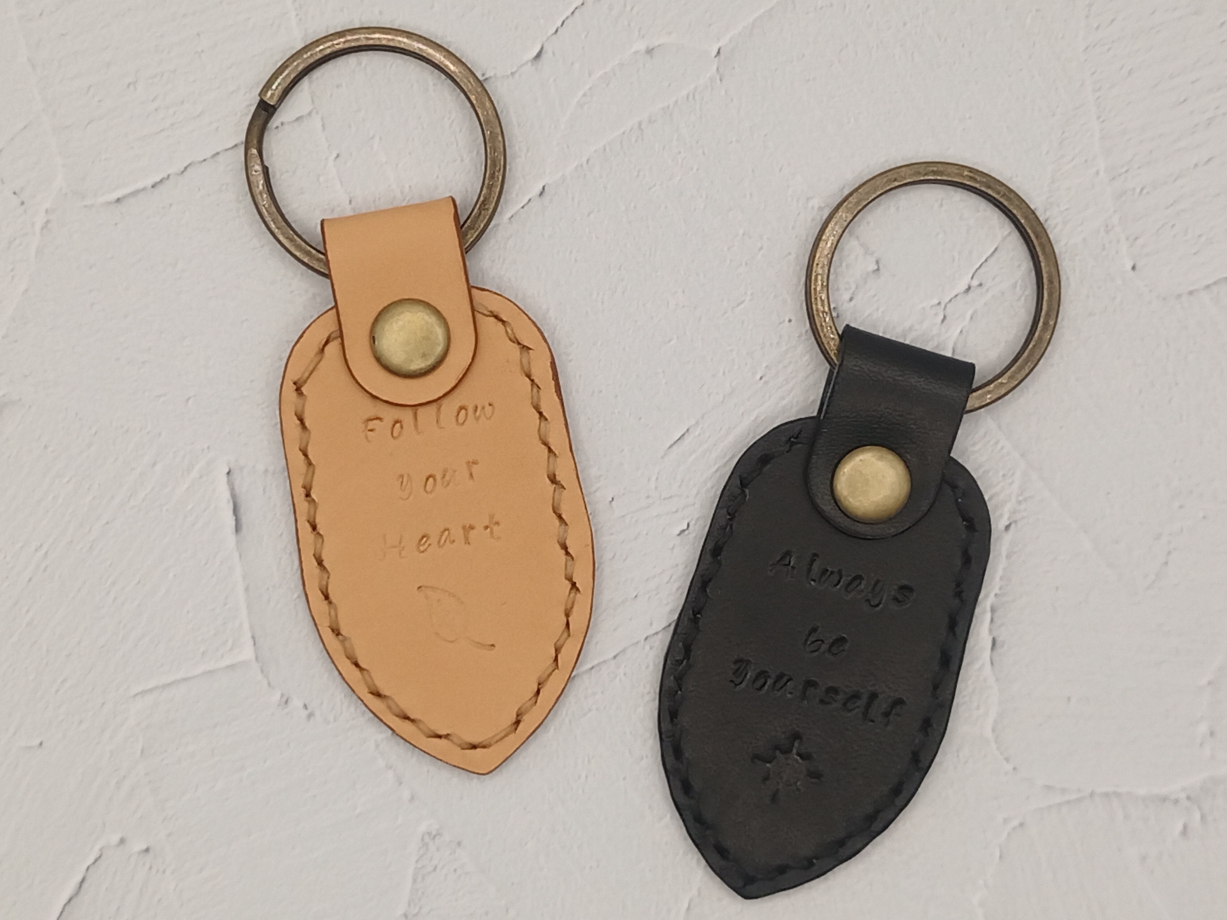 本革を使用したメッセージ刻印のキーホルダーです。意味は「自分の心に従いなさい」