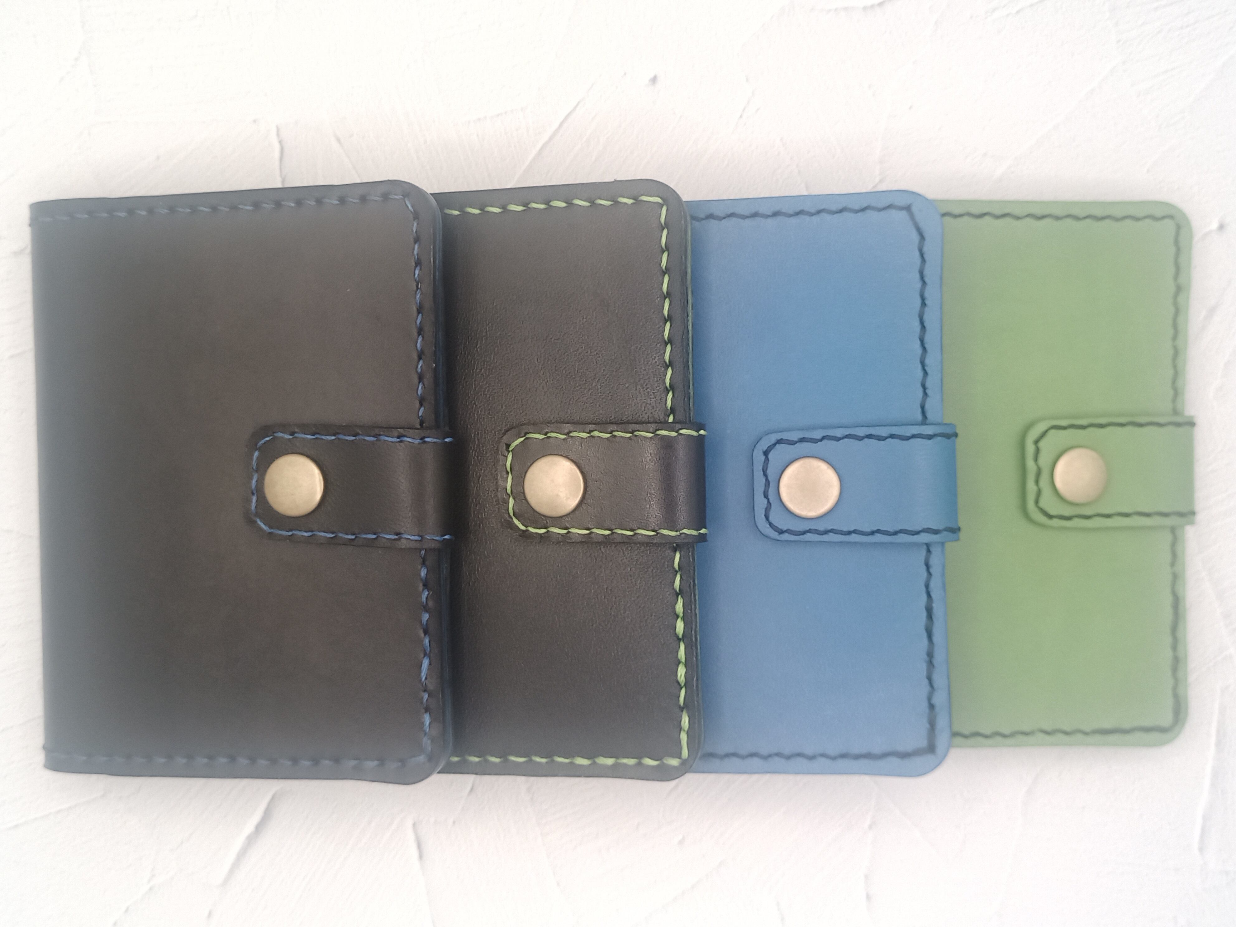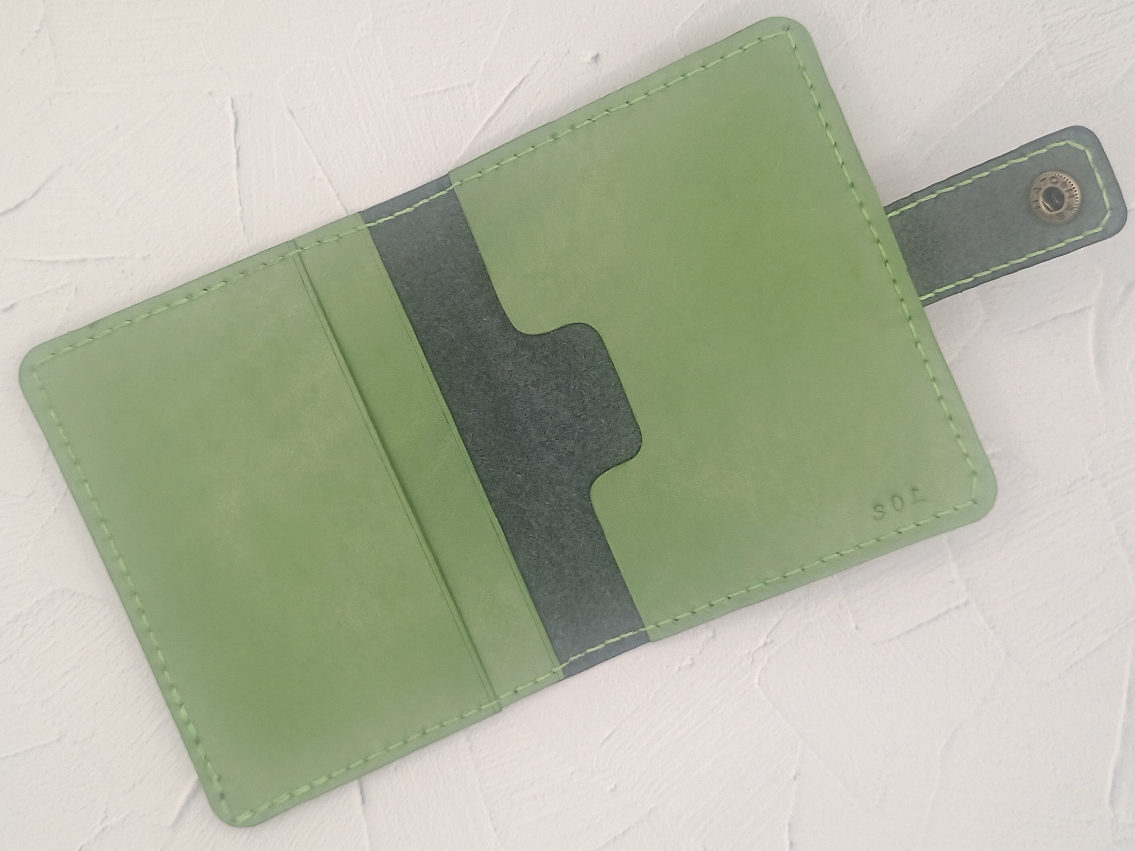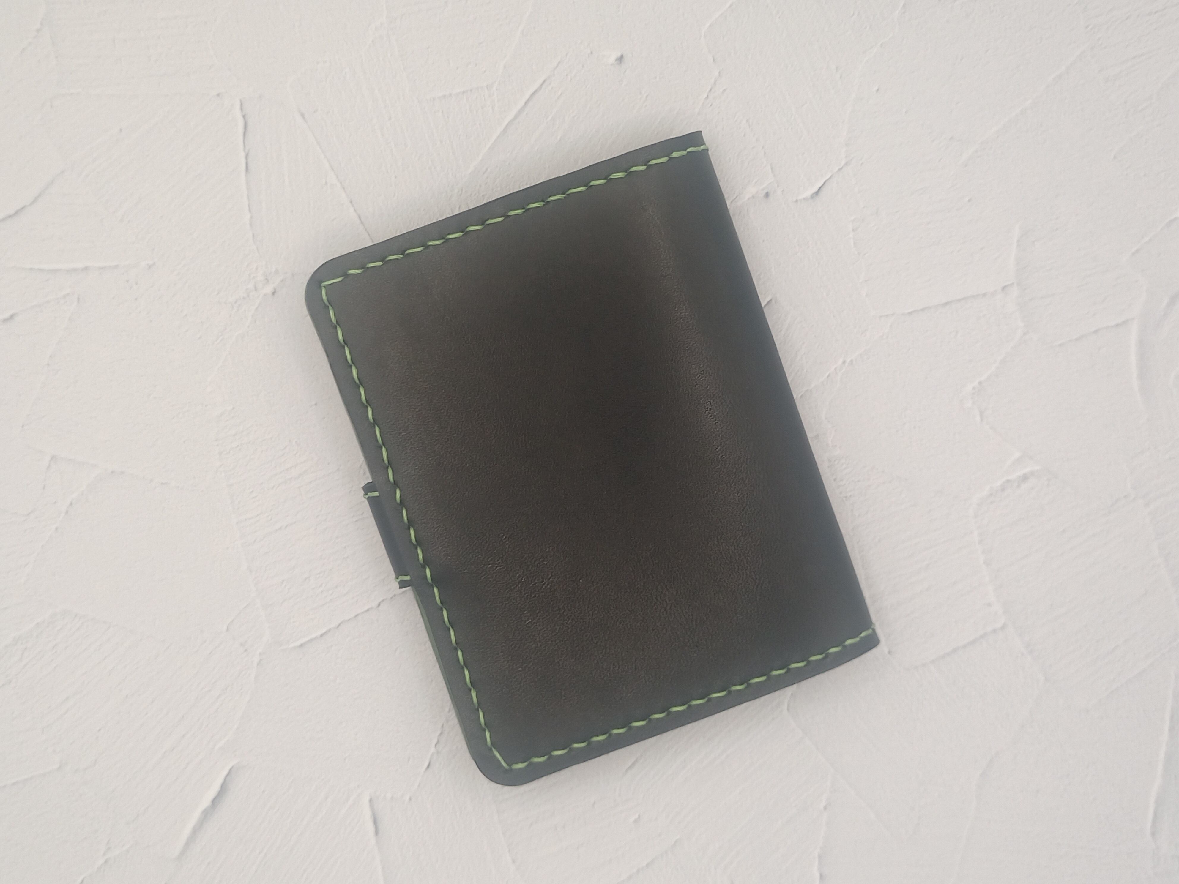 しっかりした硬めの革で仕立てたブラック×グリーンのパスケース。使っていくうちに柔らかくなっていく過程を楽しんでいただきたい。普段よく使用する交通系ICカード、ポイントカード、クレジットカード等の収納に。