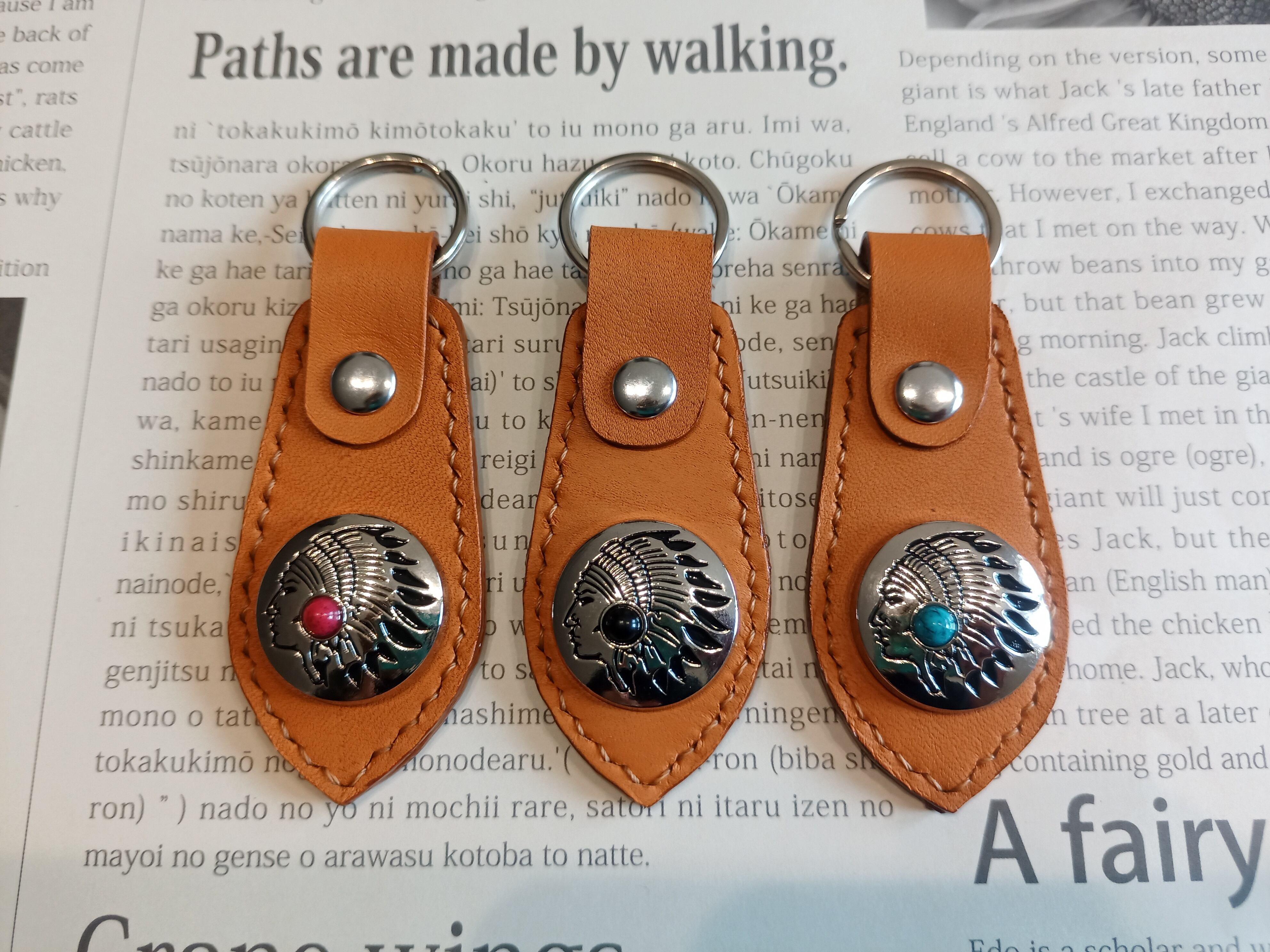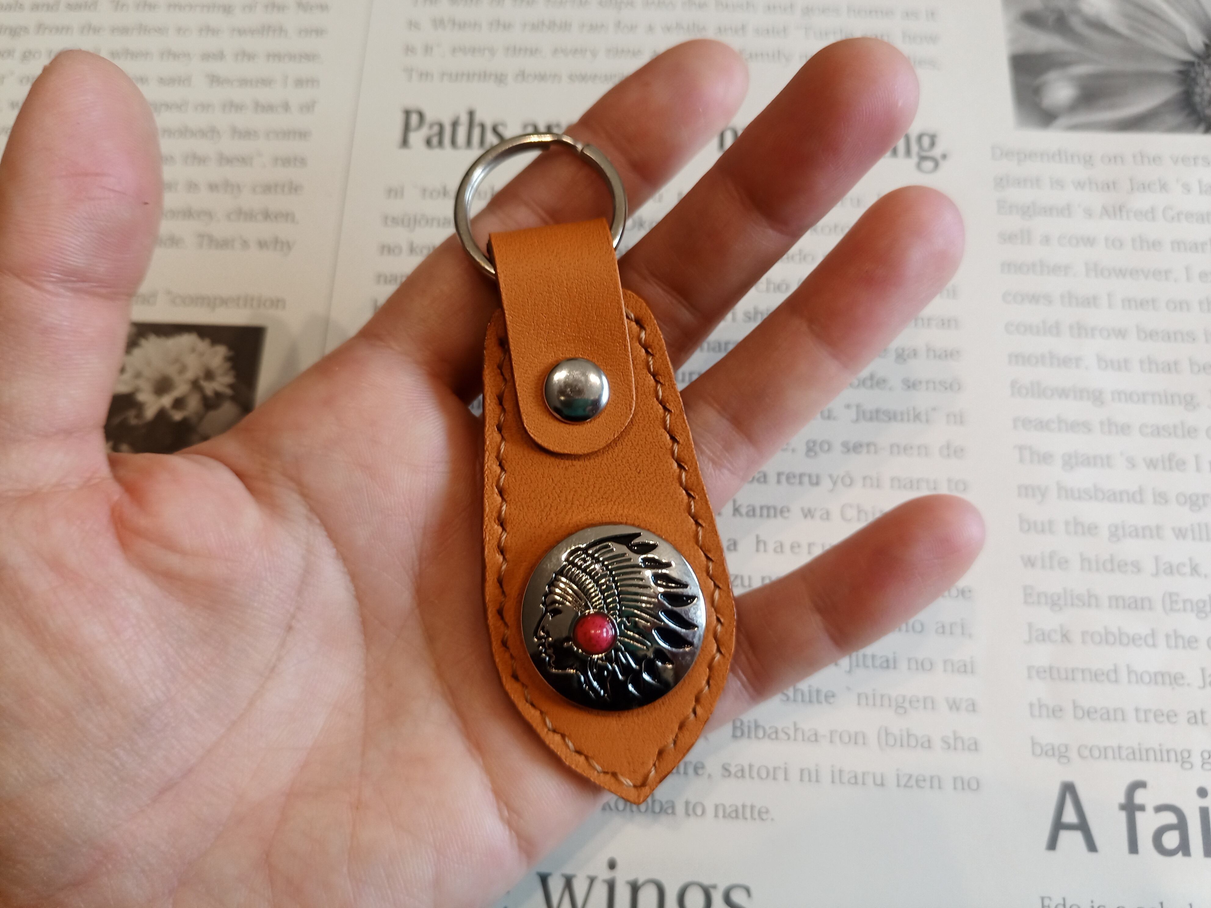 インパクトのあるコンチョをアクセントに使用したキーホルダー。車やバイクのキーホルダーに。