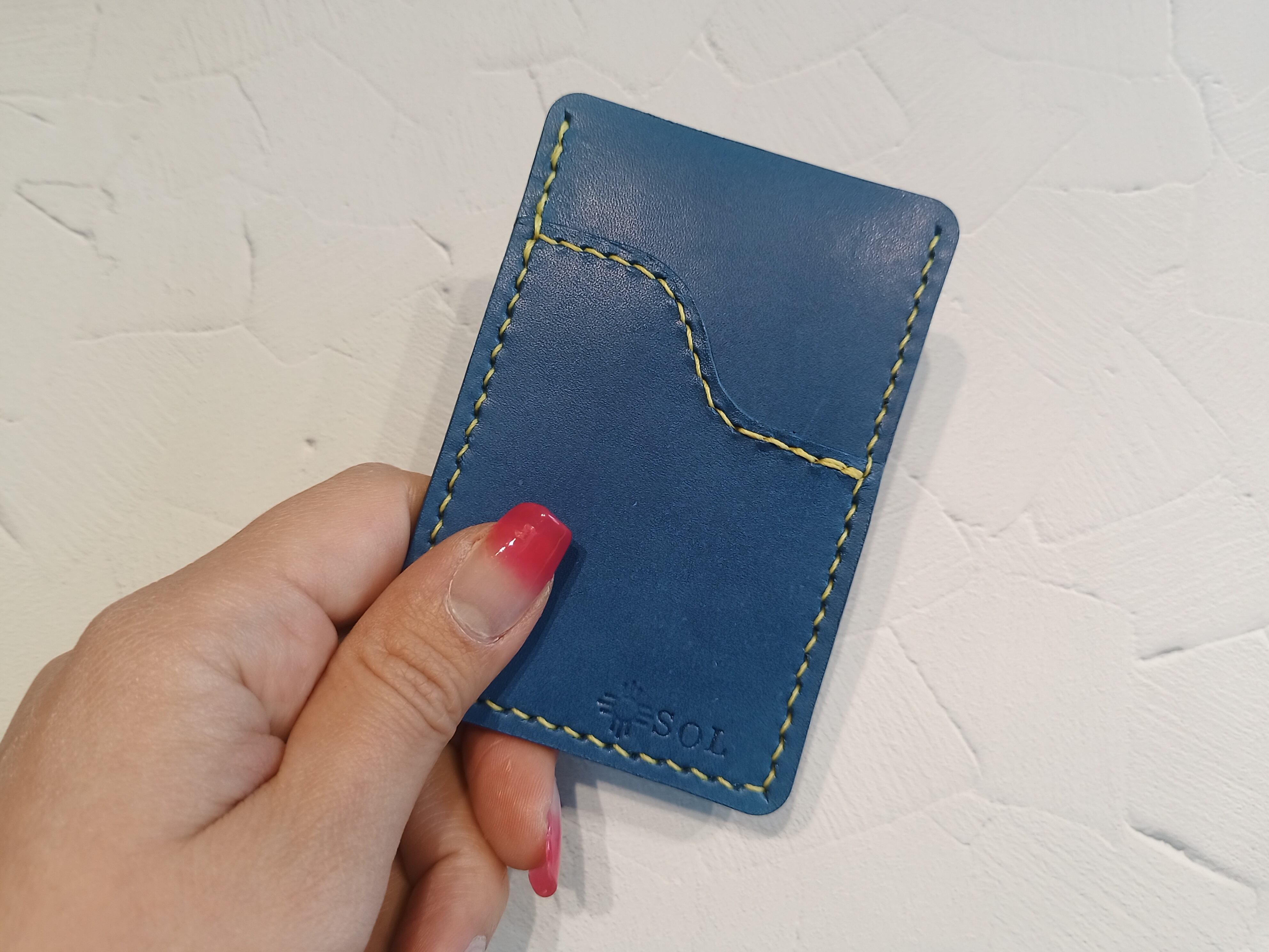 シンプルなパスケース。交通系ICカードを入れるのに便利。内側と外ポケットにカードが入ります。厚みも薄いので服のポケットにも収まるサイズです。(※その際は色移りにご注意ください。)